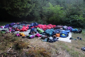 Včerejší noc byla pro děti zajímavá a odvážná. Děti spaly pod širým nebem mezi hustými lesy, poblíž druhého nejstrašidelnějšího hradu Svojanov. Pomocí her a po boku oddílových vedoucích, děti překonaly sami sebe, opekly si buřty a hady (kynuté těsto) a uchýlily se pod hvězdnou oblohou ke spánku. Ranní budíček byl neobvyklí voláním z lesů slovy „budíček“ a zvukem harmoniky, znělky z večerníčkové pohádky. Poté následoval návrat do tábora, a kde byla již nachystaná snídaně.